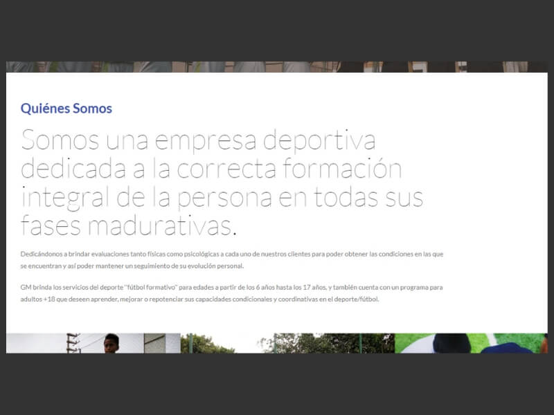 Se creó junto con ellos un sitio web responsive donde sus clientes pueden ver toda la información relevante de la empresa con contenido audiovisual (fotos, videos) y consultar sus servicios, diseño web personalizado y adaptable para dispositivos móviles (Responsive), integración con redes sociales y galería de videos integrado.